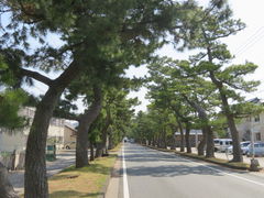 車が通過する道路の両端に松並木が続く風景が見れますよ。