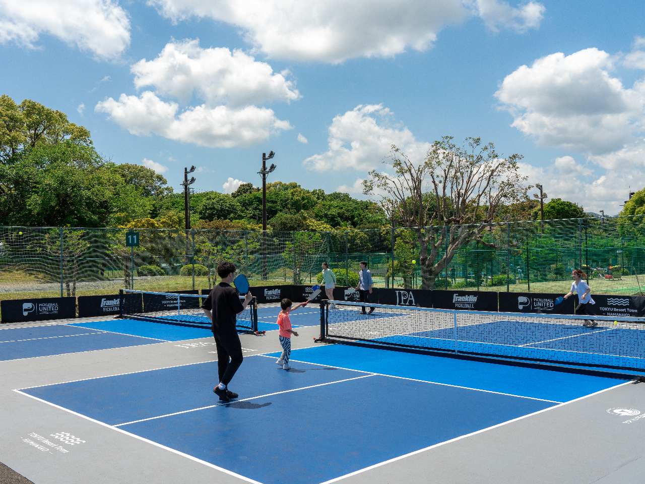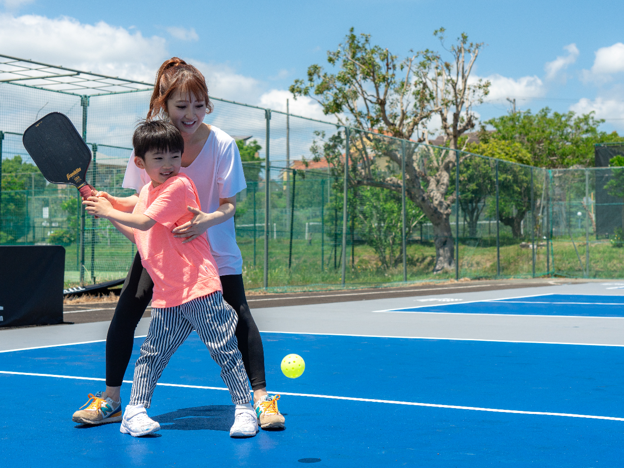バトミントンと同じ大きさのコートで行い、ラケット(パドル)は軽く、
