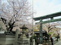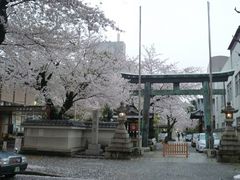西側入り口の桜と鳥居、桜も満開にお隣、那古野神社と共にこの時期は花見客で賑わいを見せ屋台も並ぶのだがいつしかそれもなくなり、訪れた夕刻には灯篭に灯が入り静かなたたずまいの中で桜が咲き誇っていた、ある意味では本当の夜桜見物だ。