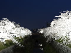 今年の桜は10日ほど早く咲き、3月末にはすでに満開。ライトアップが始まる頃には散り始めるか?とヤキモキしていました。29日からライトアップ開始。初日の夜に山崎川へ。平日でも鼎橋から鼎小橋まですごい花見客!特に木造の鼎小橋には100名ほどの花見客でごったがえし!橋が崩落するのでは?この橋の上と橋のすぐ南側から見える桜が一番の見所です。ライトに照らされて夜空に浮かび上がる桜は薄いピンクの雲が湧き上がってくるようです。すごく幻想的な景色には都会の雑踏を忘れさせる雰囲気をもたらしてくれます。