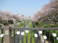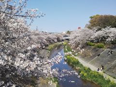 瑞穂競技場横を流れる川の両側に桜が植えられ、一部花は散り始める木もあるが、まだ満開を咲き誇る木が殆ど、ところどころには川岸まで下りる階段があり下から見る桜も、また格別である