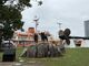 タロ、ジロ像と南極観測船ふじ