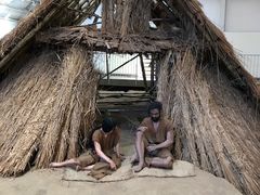 最初に竪穴式住居の復元の建物に入りました。それがあるだけの建物なんですが、周りにの壁に資料を貼って合ってなるべく飽きないように工夫をされています。次の資料館もそうなんですけど、ここ写真撮るのウェルカムみたいな張り紙がしてありますね。自分、古代文明の人々の生活を少し調べていて、家で復習がてら見たい時があるので、これはありがたいです。