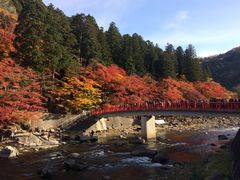 香嵐渓に来たのならオススメ撮影スポット!紅葉と赤い橋のコントラストが綺麗です。ただし、みなさん同じことを考えているので、混みます…