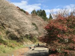 秋の紅葉を楽しむだけでも素敵な川沿いの散歩道なのに,さらに桜が満開