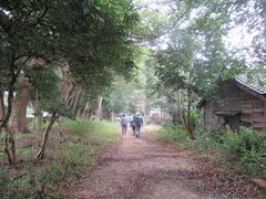 カギ状片方の道から2〜300m緑深き木々に覆われた参道