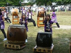 桶狭間古戦場まつりが開催されており、豊明太鼓を演奏していました。