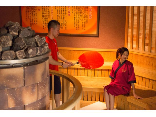 お時間限定でフィンランドの蒸気浴をベースに開発された天然アロマ熱波の「ロウリュウ」も体験できます。