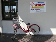 吉良町では、放置自転車を活用したレンタサイクルを町内5か所の施設に設置しています。このレンタサイクルは、吉良上野介義央公が赤馬に乗って領内を巡視したという言い伝えにちなんで、車体を赤く塗装し、『赤馬Go!』と言います。歴史民俗資料館にもレンタサイクルが借りられます。