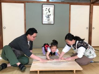 3歳 7歳 11歳 3人の孫を連れて蕎麦作りに行きました。3人とも蕎麦は嫌いと初めは言っていたのですが、作り始めると真剣そのもの。手伝おうとすると手を払いのけ、超夢中になって作ってました。出来上がった蕎麦は一部ざるそばにしてくださり、その場で食べれるのですが、これがまた美味しくて蕎麦は嫌いと言っていた3人が取り合いで食べて殆ど私の口には入りませんでした。孫達の蕎麦へのイメージが変わったようです。何しろ楽しく良い体験が出来ました。ありがとうございました。