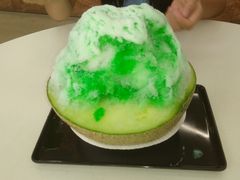 メロン街道のパンフレットを見て訪問。メロンが山盛りで販売されています。メロンかき氷(メロンの大きさで値段が変わり500〜1500円)を注文。「今日は1000円ですが良いですか、大きいのにしておくね」と直径20cm以上はありそうなほどよく熟したメロン半身に山盛りのメロンかき氷がのって登場。子供とシェアしながら必死で食べ、途中からはメロンの実を削りながら贅沢なかき氷を頂きました。メロン農園ですが、かき氷自体のクオリティーも高く、かき氷専門店並みの美味しさ。伊良湖岬のメロンかき氷の有名店(日本で2番目?)よりも個人的には美味しいと思いました。メロンだけでなく日本一甘いスイカも販売していました。