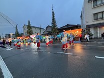 太鼓の音や威勢の良い掛け声が街中に響いています。