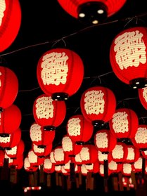 夕暮れ時、空が茜色に染まり始めると、ひとつ、またひとつと提灯に灯りがともされ、