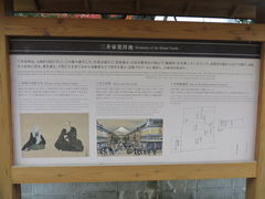 松阪商人の町並みの地区に近づくと 三井家発祥の地の大きな案内が出ていたので、家屋が残っているかと期待したのですが、門のみが残されていて、門の中も見ることはできませんでした。三井創業の祖 三井高利ゆかりの場所だそうで、井戸などが残っているそうですが、内部は公開されていません。