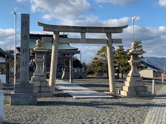 私たちは徒歩で参拝しましたが、すぐ横に国営木曽三川公園の無料の駐車場があるので、車で訪ねるのも便利です。トイレもきれいで助かりました。社殿や狛犬は新しく、鳥居脇の灯籠が江戸時代のものだということです。神社あたりの堤防から見た揖斐川は素晴らしい景色でした。