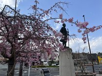 いよいよソメイヨシノの桜の開花時期が近づいてまいりました。毎年綺麗に咲いている桜でございますが、今年の桜は現在つぼみの状態でして、見頃が4月上旬から4月中旬と予想されています。「白鳳城」とも呼ばれる伊賀上野城の周辺一面に、桜が美しく咲き誇ります。また、当館から徒歩で向かわれますと、門をくぐり抜けた先には美しい桜並木とその先に桜をイメ―ジした、ピンク色に輝く伊賀上野城をお楽しみいただけます。まるでお城に霧がかったように桜が咲き幻想的な光景をお楽しみいただけます。