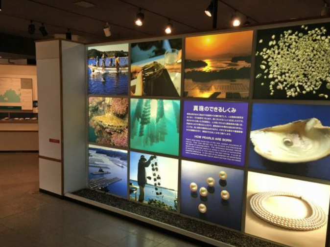 世界初の真珠養殖者・御木本氏の精神や活躍を展示品やアニメーションを通して