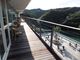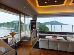 湯快リゾート・鳥羽彩朝楽は鳥羽温泉街の端っこの方にありますが、眺望抜群の場所にあります。小さな島と岬が交錯するリアス式海岸の斜面に立っているので、フロントがあるロビーからして充分に高い場所にあり眺めが素晴らしい。そうしたロビーのすぐ外に足湯が設けられています。足湯に座ると、手すりの向こうには鳥羽湾の海の絶景しか見えません。そんな高い場所での足湯には格別の楽しさがあります。