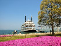 - 夜の琵琶湖の色鮮やかに写す花噴水☆ 透明、橙、緑の3色の噴水が琵琶湖をロマンチックにします♪ 当ホテルから徒歩20分!散歩のついでにいかがですか♪^_^