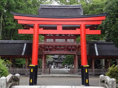 野洲市五条566。建立1300年を迎えた古社。祭神はオオクニヌシ別名「大己貴命(オオナムチ)」、別名「八千矛神(ヤチホコ)」。広大な境内の入口には、足利尊氏の寄進と伝えられる朱塗りの楼門が立っている。楼門をくぐると楓に包まれた玉砂利参道で、その奥に変化に富んだ拝殿・本殿ががある。