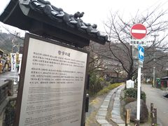 ここもかねて行きたいと思っていた「哲学の道」。銀閣寺参道を降りるとそこから南へ向けて琵琶湖疎水が流れ、それにそって通称「哲学の道」が始まります。京都大学の哲学の先生が思索にふけりつつ歩いた道ということで命名されたとか。冬は、ほかにひとがおらず、とても静かな一帯でした。雨でしたが空気も澄んでいて、ゆっくりと、南禅寺方向に向けて歩き始めました。歩道として独立しているので歩きやすいですが、完全舗装ではないので、車椅子の通行は難しそう。