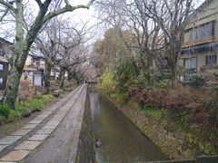 2月の哲学の道は、木々の色もなく寂しい印象ですが、その分ほかに人もいなくてゆっくりと疎水沿いの散策を楽しみました。哲学の道には桜の木が並んでいるので、春にはきっとお花見をしながら歩く人でにぎわうのでしょうね。木々の並ぶ水路沿いをただのんびり歩くなんて、とてもぜいたくな時間に思えました。