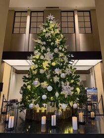 1Fエントランスにも大きなツリーが並び、昼は明るく、夜はぐっとドラマティックに。
