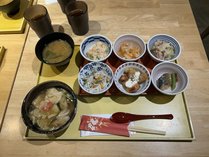 日替わりのおばんざい小鉢から6種自由に選ぶことができ、ご飯とみそ汁もついてきます。