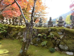 嵯峨野小学校から歩いてあだしの念仏寺に行きましたのでかなり疲れました。しかしあだしの念仏寺に近くなると静かな雰囲気に成ってきて念仏寺入口階段からは更に落ち着いた雰囲気に変わり、中に入ると2時間サスペンスドラマで良く見た賽の河原の景色が見れました。