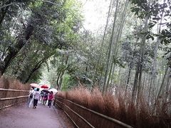 ツツジの綺麗な5月にいくのをおすすめしますが、梅雨の時期と重なり、雨の中を歩くことになります。しかし、雨の日も情趣があっていい雰囲気です。古典によく出てくる小柴垣(柴で作った垣根のようなもの)が見られたので、平安時代の気分を味わうことができます。ずーっと歩いていくと、公園やそば屋さん、茶店が見えてきます。駅付近は観光客で混雑しますが、竹林の中は素通りする人も多く、空く時間や場所もあるので探しながら歩いていき、のんびりできる場所を探してみるのもいいと思います。