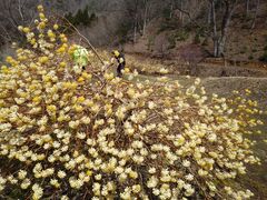 山肌一面を覆うミツマタが黄色に美しく彩ります。