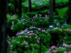 アジサイ園は、杉の大木の周辺にアジサイが植えられ、ボリュームも美しさも見事。さすが関西トップクラスのアジサイの名所でした。