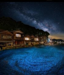 ◆伊根の舟屋の夜光虫と天の川景色🌌
