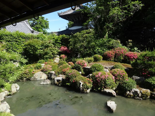 西国33ケ所第21番札所。本堂には諸病を癒すといわれている等身大の木造釈迦涅槃像(なで仏)があり、人々の信仰をあつめている。境内の庭園は室町時代末期のものといわれ、丹波名庭の一つで、府の文化財に指定されており、静寂のなか佗、寂を感じることができる。