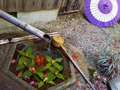 書院の手水は2つあり。一つは庭側にあり、もう一つは写経の部屋近くの如意輪の足元に「華手水(造語)」がある。