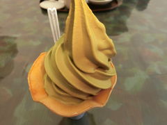 昨日まで寒かったのに、今日は暑いな・・ということで抹茶ソフトクリーム!!あまり期待していなかった分、口の中に入った瞬間の抹茶感に大満足!!