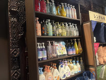 1Fロビーに各種ブランドシャンプー&コンディショナーを多数ご用意しており、「いつものシャンプー」でご自宅にいるような安心感とリラックス感を、そして「いつもとは違うけど気になっていたシャンプー」をお試しいただけます。