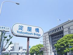 土佐堀川に架かっている橋で、付近には日本銀行大阪支店をはじめ、府立中之島図書館、中央公会堂など、有名な近代建築が点在している。初代の橋は江戸時代、当時日本一の材木商だった淀屋によって架けられた、橋長約65m/幅員約4mのもの。橋名は、その淀屋にちなんでつけられた。淀屋家は堂島米市場や天満青物市場、さらに雑喉場(ざこば)魚市場の形成に多大な貢献をしたといわれるが、宝永2年(1705)突如として闕所(けっしょ)処分とされ、家が断絶となった歴史が残っている。当時の橋は明治18年(1885)の大洪水のため流失した。現在の橋は、大正11年(1922)から始まった第1次都市計画事業の一環として意匠設計の懸賞募集が行われ、昭和10年(1935)に完成したもの。デザインがたいへん優れ、周辺の環境とも調和しているなどの理由で、大阪市が行った橋に関する意識調査結果では、市民にとって最も魅力を感じる橋に名が上がっている。橋上を一日に7万人が渡り、6万台の車が通る。