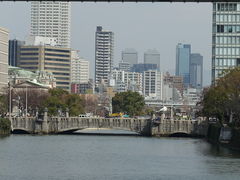 中之島に架かる橋の中でももっともインパクトのある橋のひとつです。御堂筋が土佐堀川を渡るところに架かる橋で、橋のすぐ北側には日銀大阪支店や大阪市役所があります。交通量が多い橋ですが、一方で石造りの剛健、そして風情溢れる橋です。今回は西側にある錦橋からその全景を眺めましたが、改めてとても素晴らしい橋だと感じました。