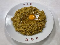 中央をくぼませたライスの上に生卵を落とした自由軒の名物カレーは雑誌やテレビでよく紹介されますので、ご存じの方も多いことでしょう。明治43年(1910年)に創業し115年もの歴史があるお店です。小説「夫婦善哉」で有名な作家、織田作之助が足しげく通い、「夫婦善哉」の話の中にもこのお店が登場します。織田作之助はこのカレーに自由軒オリジナルのウスターソースをかけ、卵とご飯をよくかき混ぜて食べるのが好きだったそうです。皆さんも同じ食べ方をすれば100年ほど前にタイムスリップして、文豪になったような気持ちになれるかもしれません。