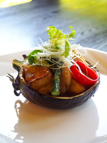 但馬鴨と賀茂茄子の宝楽仕立て 京アスパラと万願寺