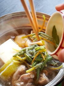 新生姜鍋 神戸豚と但馬鶏 水菜に萵苣、九条葱と占地