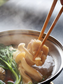 但馬鶏と神戸ポーク 玉葱と九条葱に水菜と白占地、木耳
