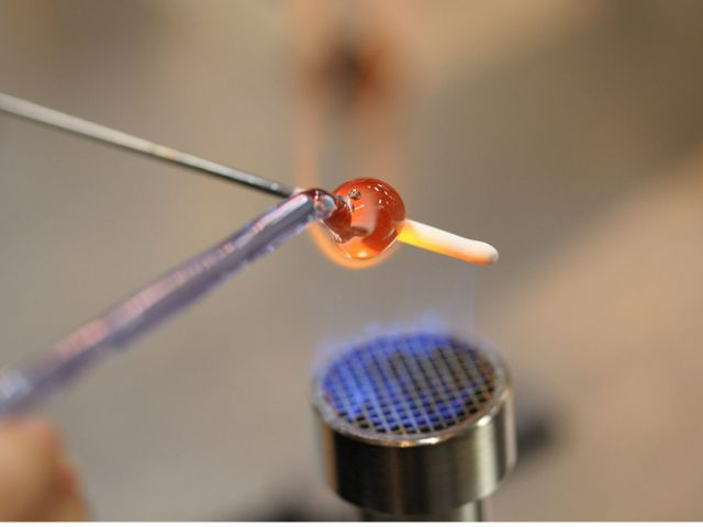 バーナーでガラス棒を熔かし、とんぼ玉を制作します♪