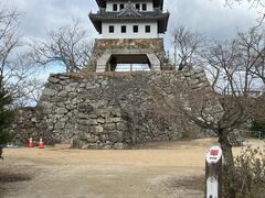 少し歩いて石段を登ると、特徴的な天守閣が見えてきます。