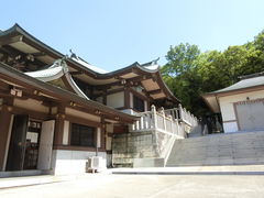 主神は天伊佐々彦命(あめのいささひこのみこと)です。景行天皇の皇后稲日大郎媛(いなびのおおいらつめ)が御懐妊された時、最初の皇子が大変難産だったため、七日七晩天伊佐々彦命が安産を祖神に祈願したところ、無事御出産されました。このことから「安産の神様」としてその名を馳せ、播磨随一の大社となりました。現在も安産祈願や御宮参りなど参拝者が絶えません。社殿に向かって右側手前に日岡御陵への表参道があります。