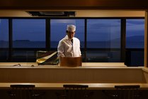 食事会場の一部を改装して、天ぷら専用のカウンターを新設し、職人が目の前でアツアツの揚げたて天ぷらをご提供しています。
