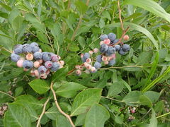 以前、こちらのブドウ園の近くにイチゴ狩りに来たことがあったので、道に迷うことなく来れました。土曜日だし、混んでいるかと心配していたのですが、先客一組だけでガラガラでした。あまりブルーベリー狩りは人気が無いのかしら?曇りだったので、熱中症になることもなく、1時間弱楽しむことができました。