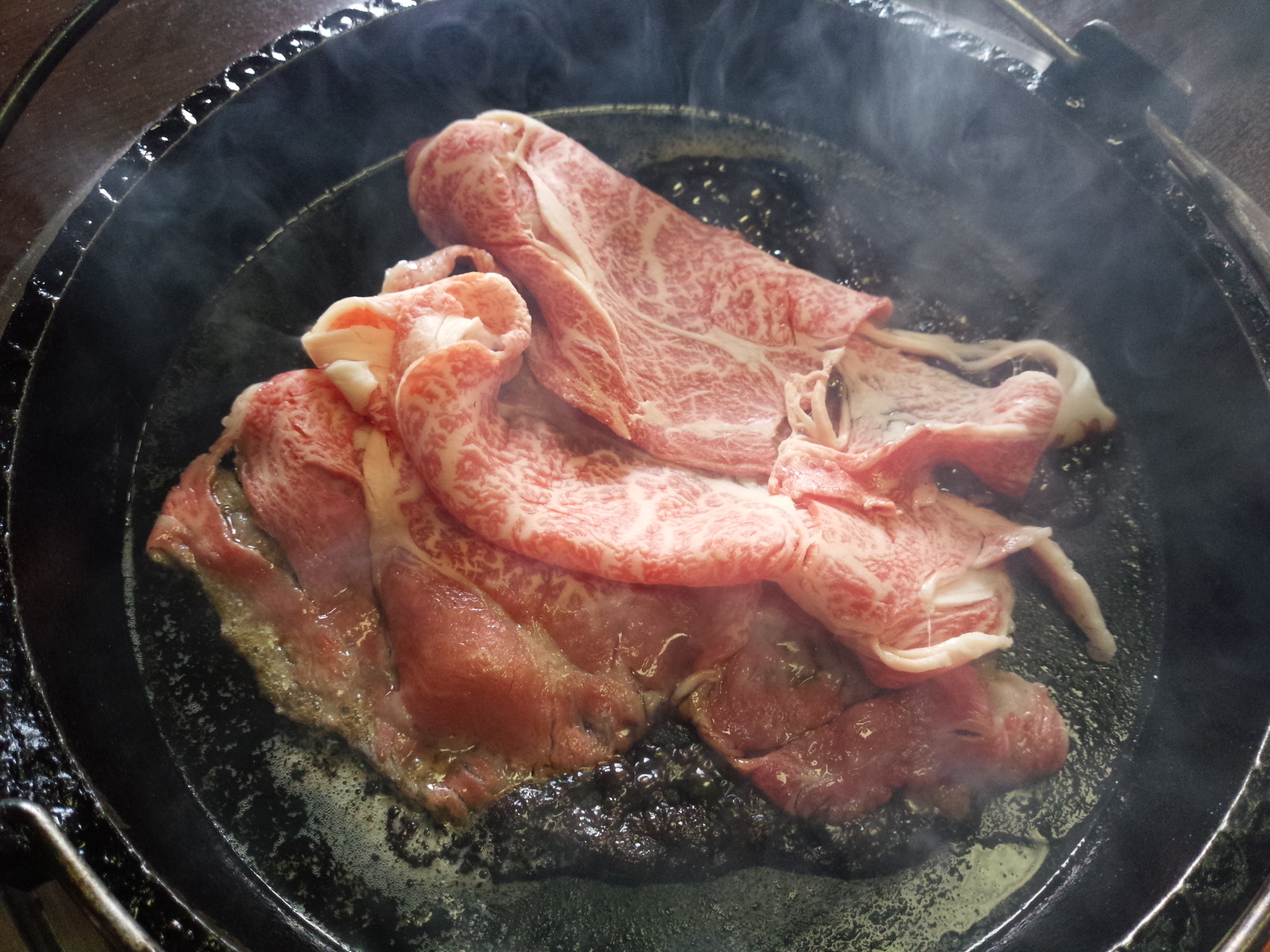 『じゃらん限定メニュー』で通常メニューのすき焼きコースのお肉を特上の三田産黒毛和牛に『グレードアップ↑↑』