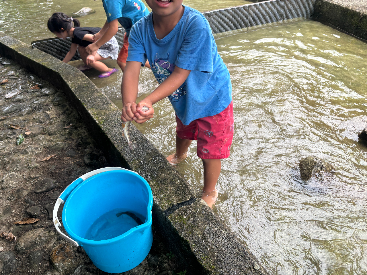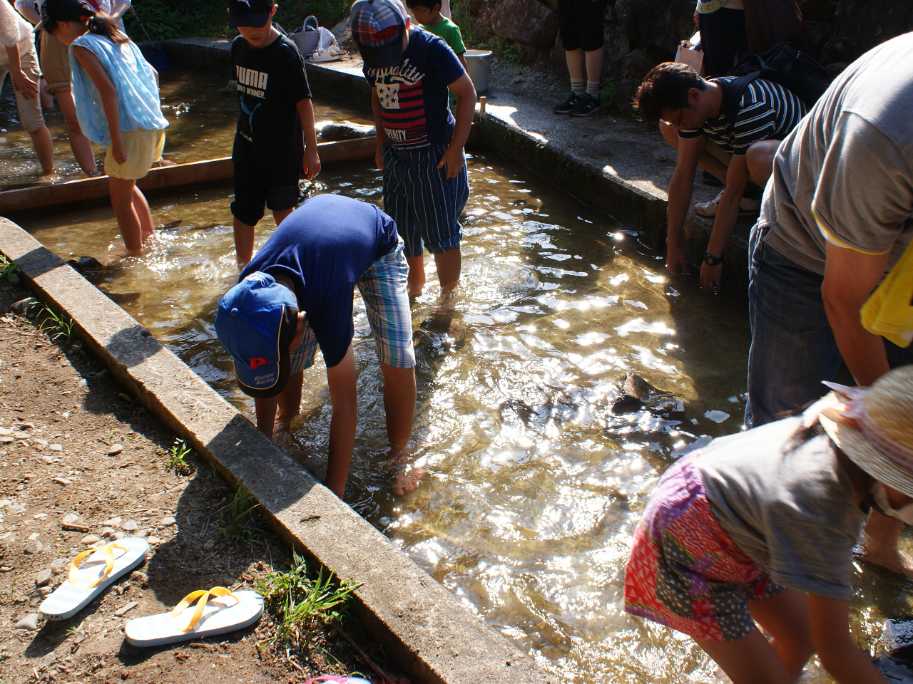 あまごを放しますので、あとは自由に捕まえて、塩焼きにしましょう!